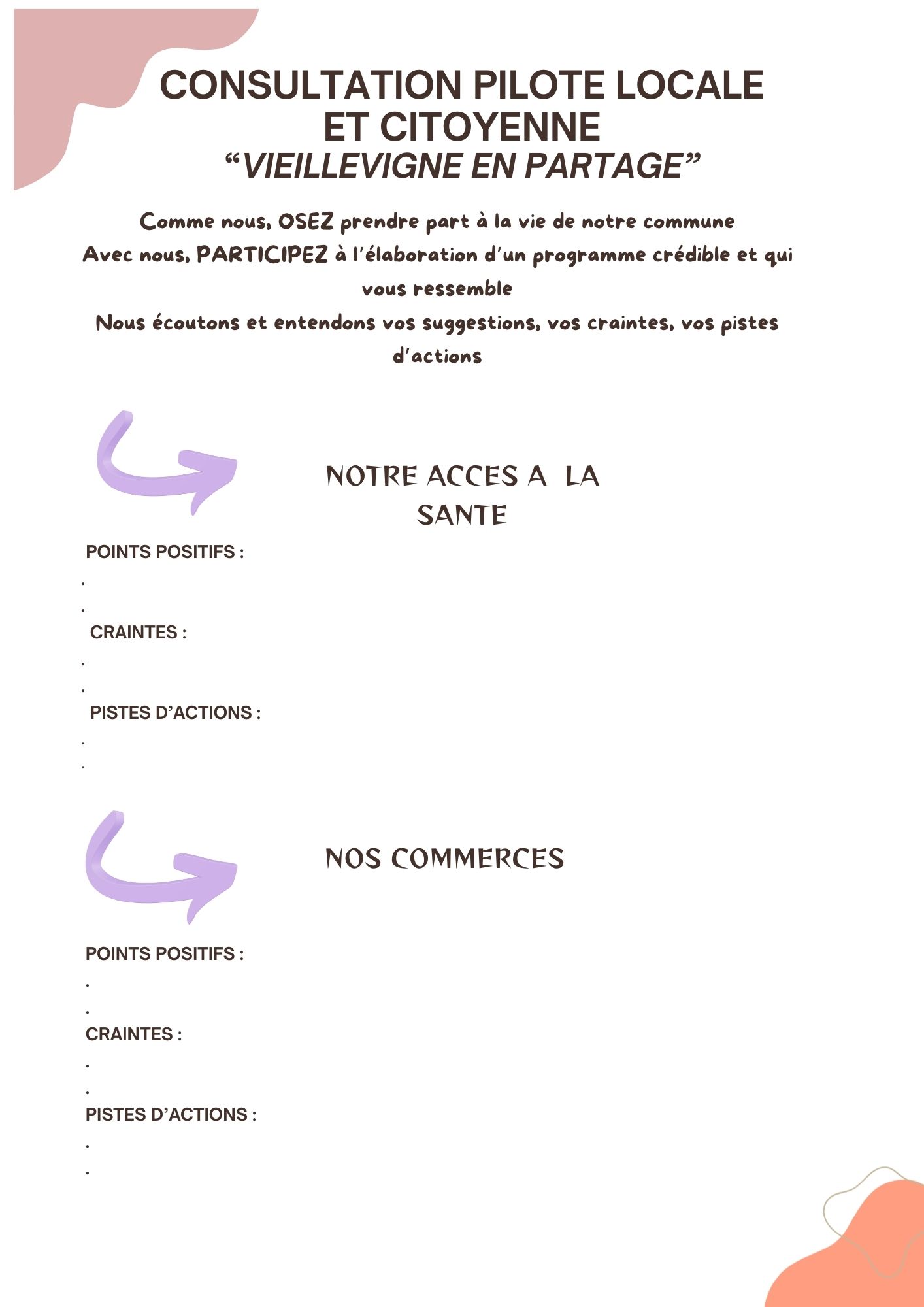 Vous êtes venus nombreux participer à notre consultation citoyenne pilote du 10 décembre. Vous avez émis des suggestions, vous avez exprimé vos craintes d'aujourd'hui mais aussi celles pour Vieillevigne demain.